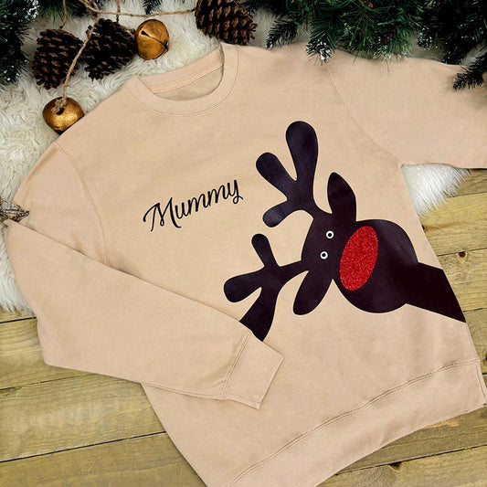 Personalised Family Christmas Jumper - Peeking Rudolph