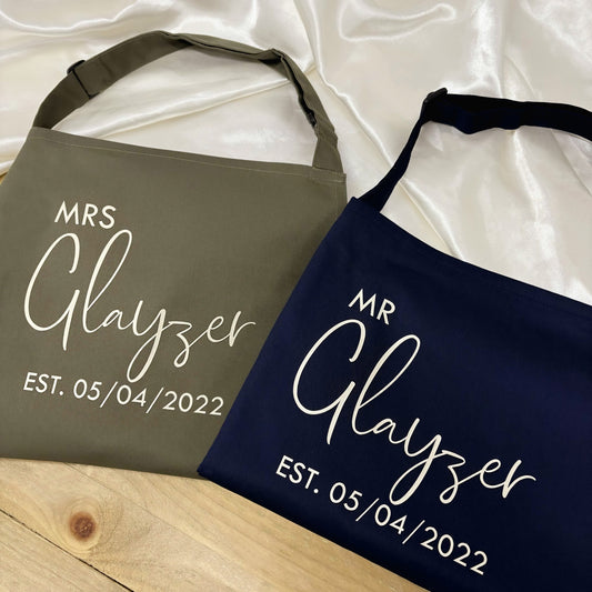 Personalised Couples Apron Set - Mr & Mrs Heart