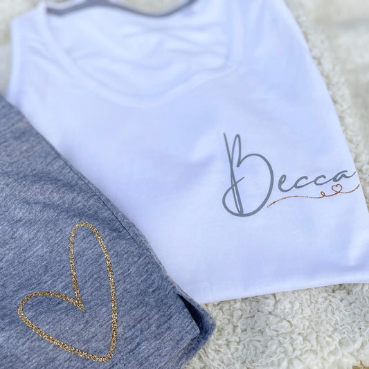 Ladies Personalised Pyjamas - Love Heart Name