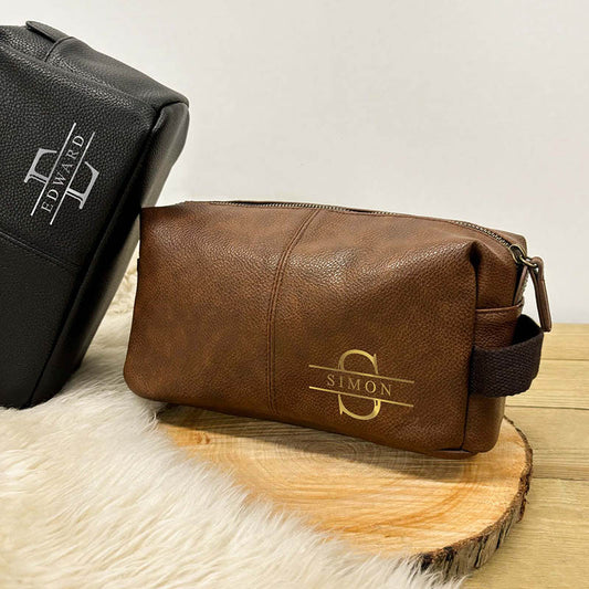 Personalised Men's Toiletry Bag - Faux Leather