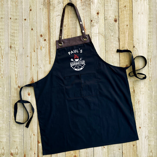 Personalised Faux Leather Apron - BBQ Est