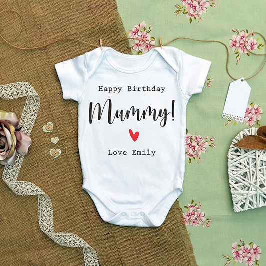 Make a baby announcement, send a cute message, or dress your little person in some of our cute personalised baby clothing.