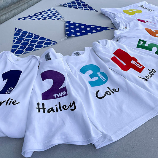 Snug personalised pyjamas, cute tshirt designs and handwritten messages are all available in our children's clothing range.