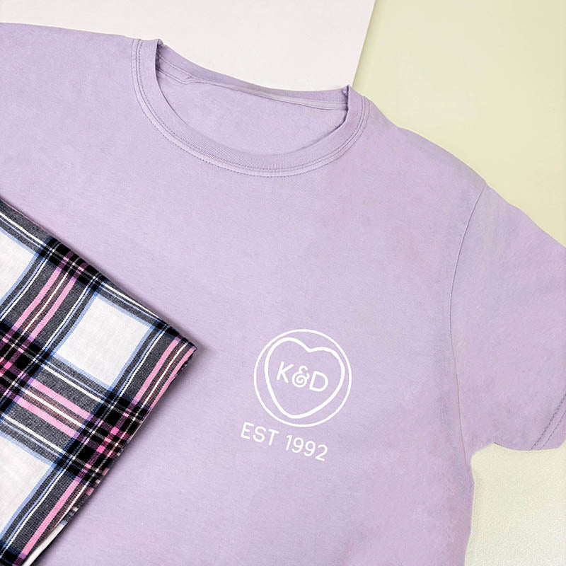 Looking for a new, cosy PJ set? Snuggle up in our custom heart-shaped pyjama set where you can personalise it with your own initials and special date.