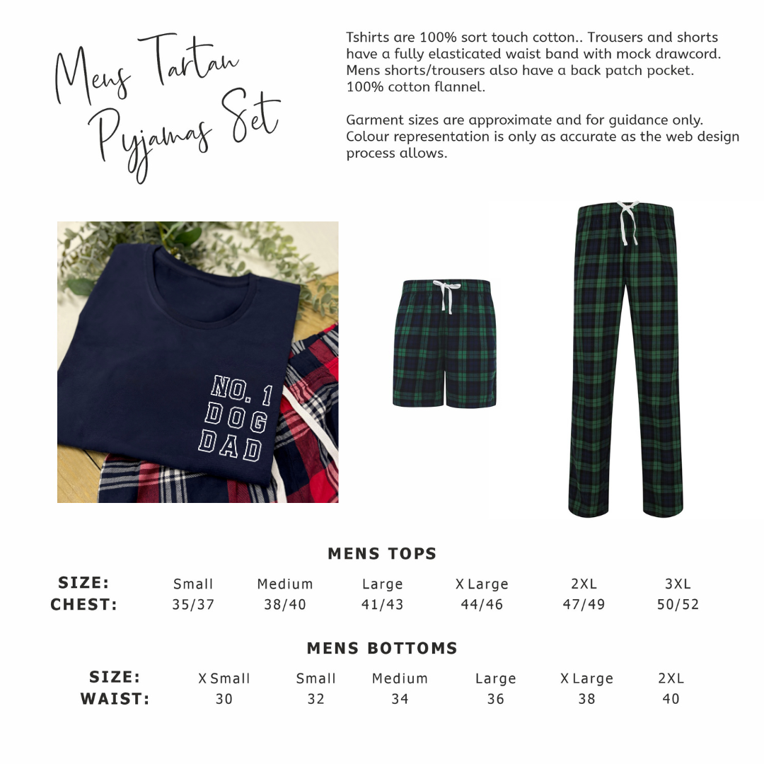 - Choose From Green or Red Tartan Bottoms with a Navy T-Shirt and White Print.