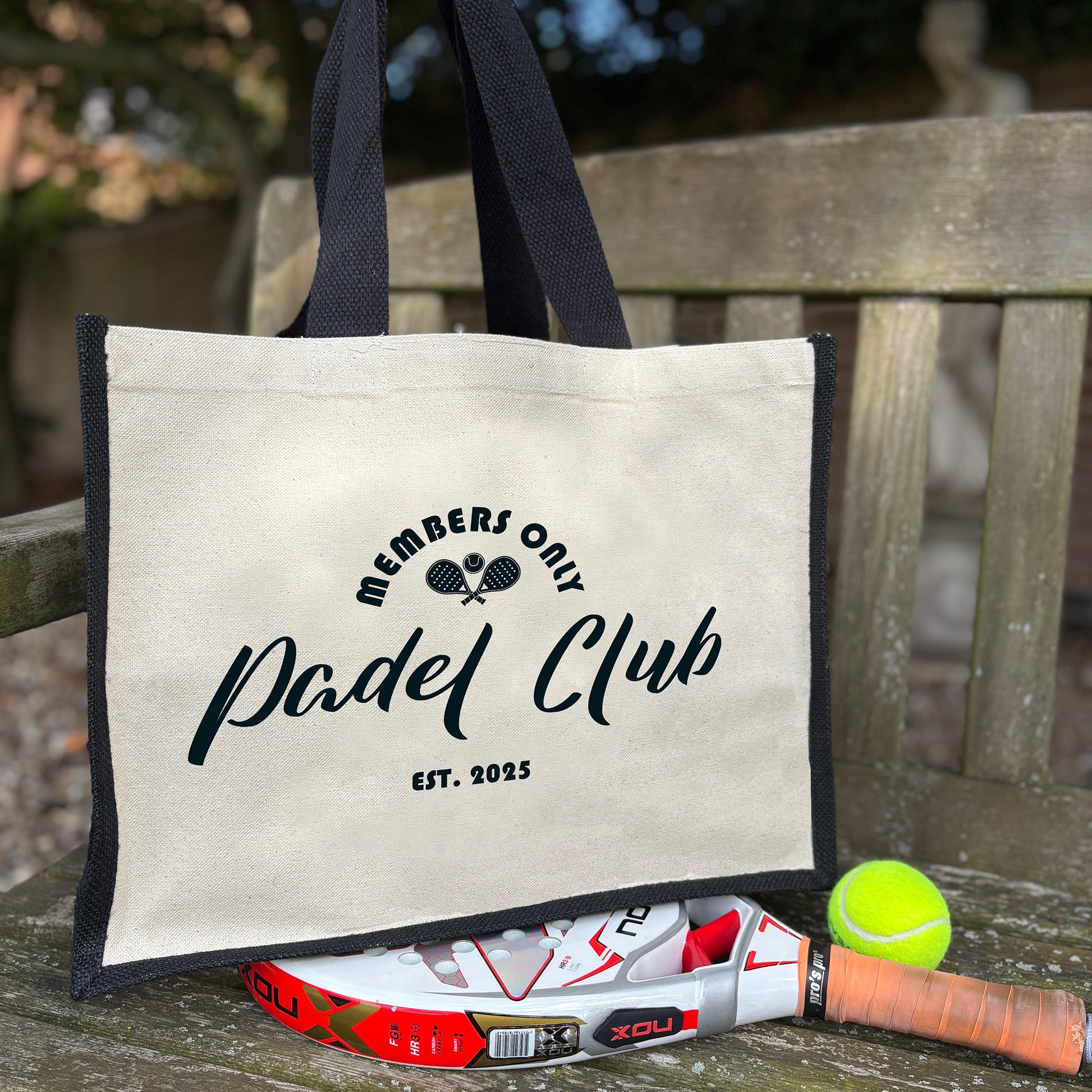 - Celebrate your Padel obsession with the tote bag. A cute Padel Club design, printed onto a canvas/jute tote bag.