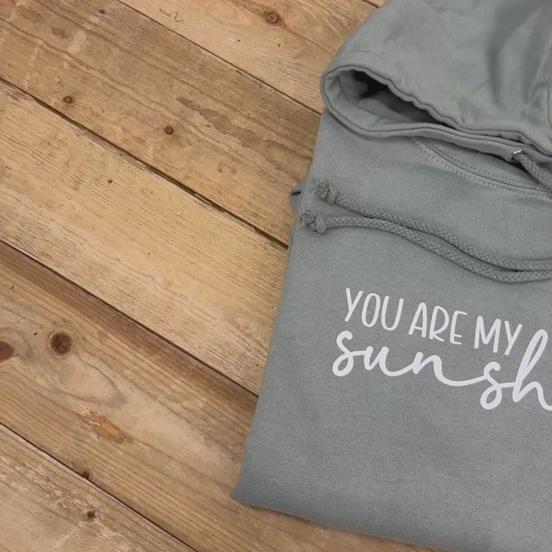 - The adults hoodie is printed with ‘you are my sunshine’ and child’s hoodie is printed with ‘my only sunshine’. An adorable, cosy set to match in.
